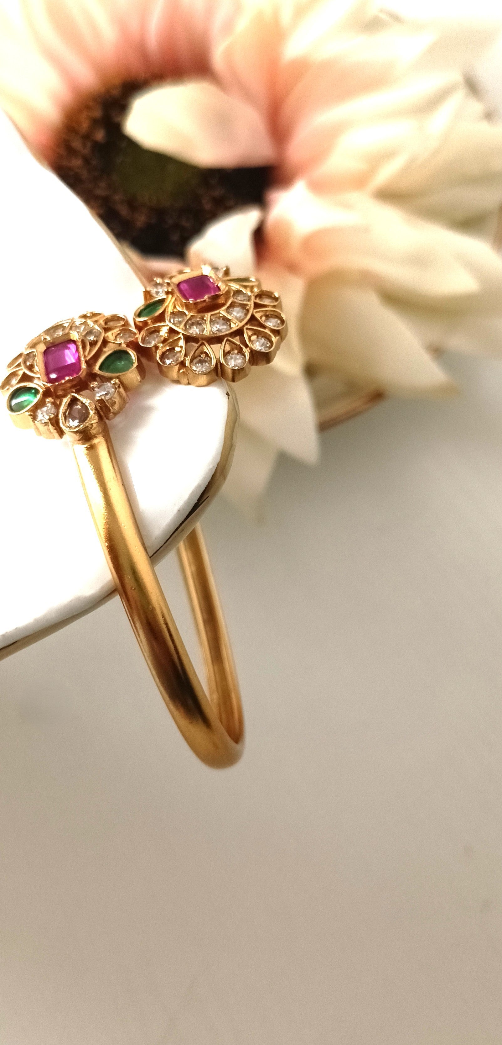 These magnificent gold-plated bracelets showcase the timeless beauty of traditional Indian craftsmanship with a contemporary twist. Each bracelet features:
