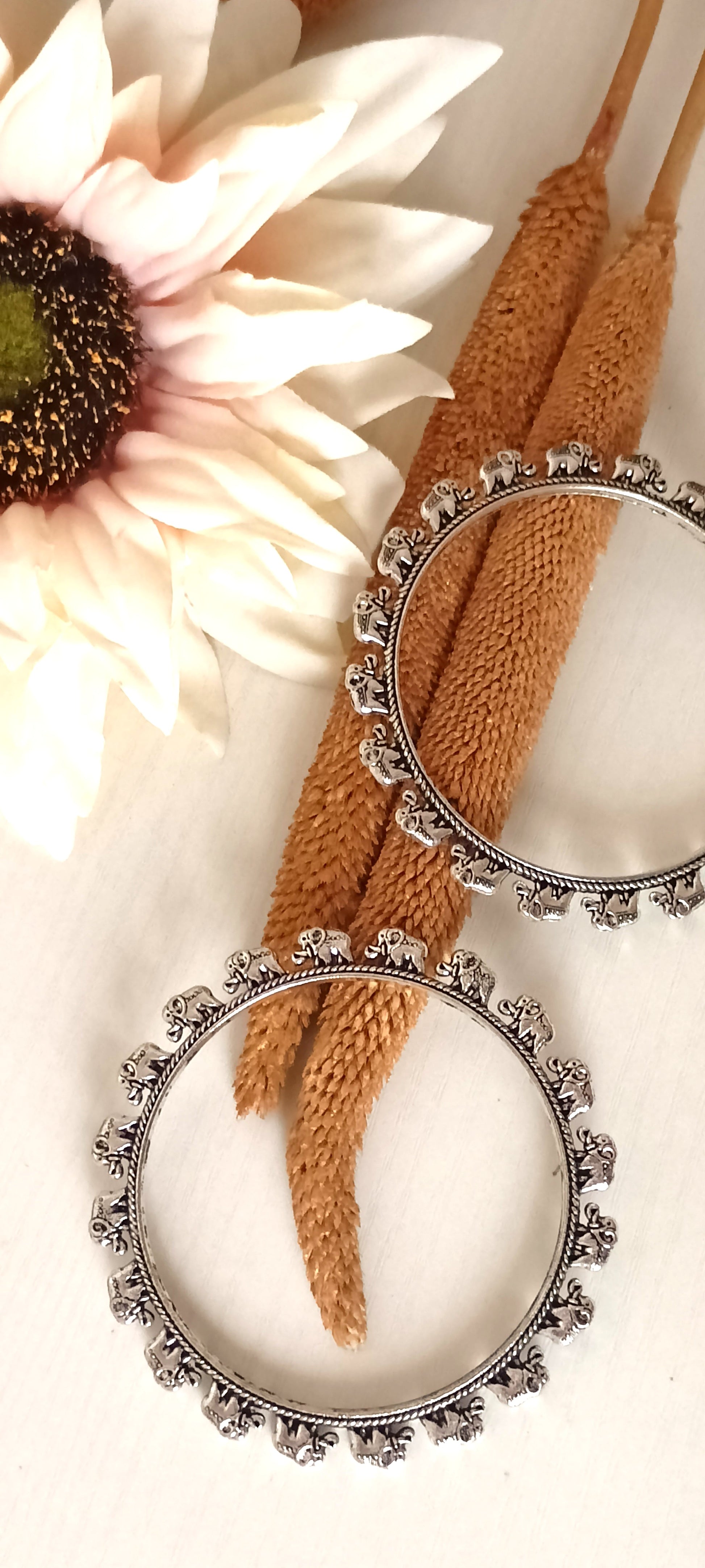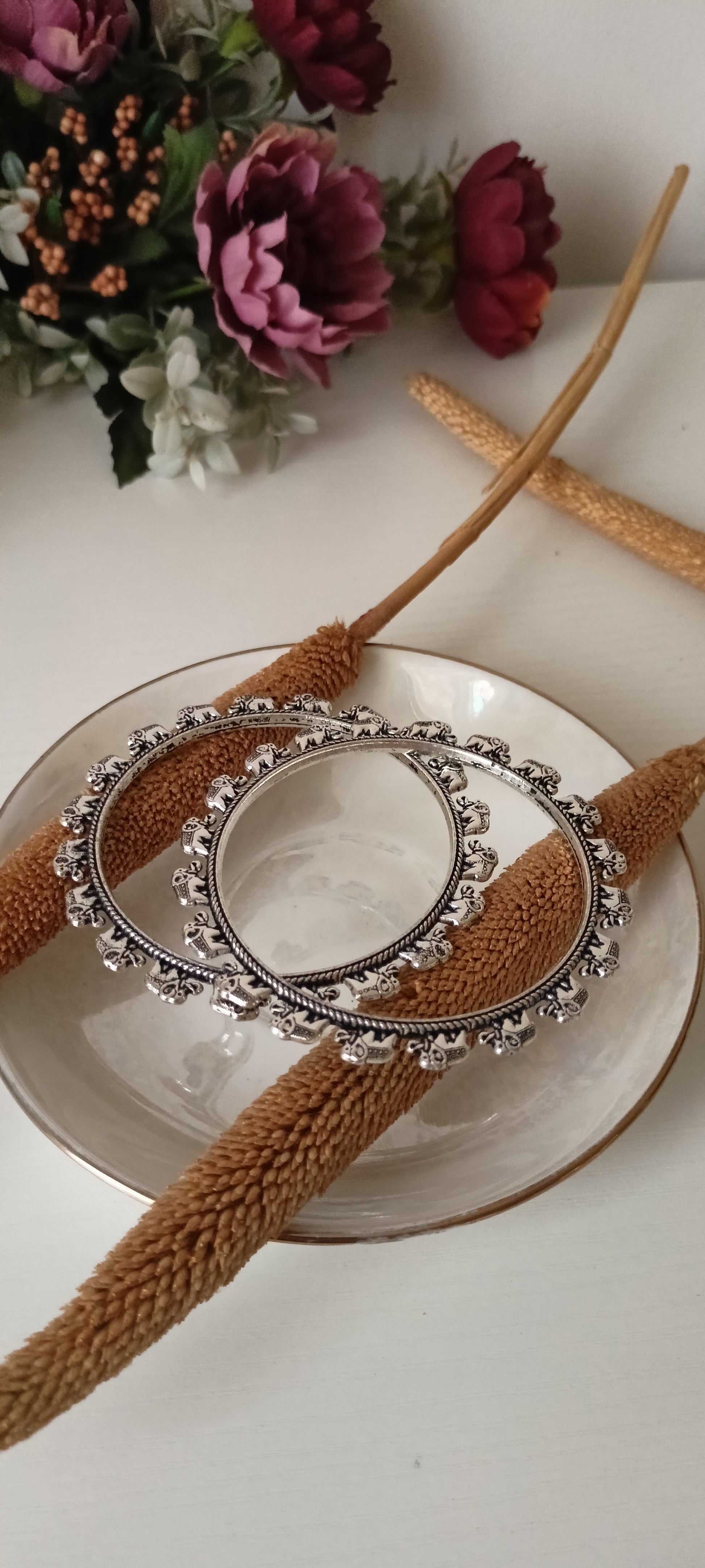 Oxidized Silver Elephant Motif Bangles – Traditional Indian Kada (Set of 2)