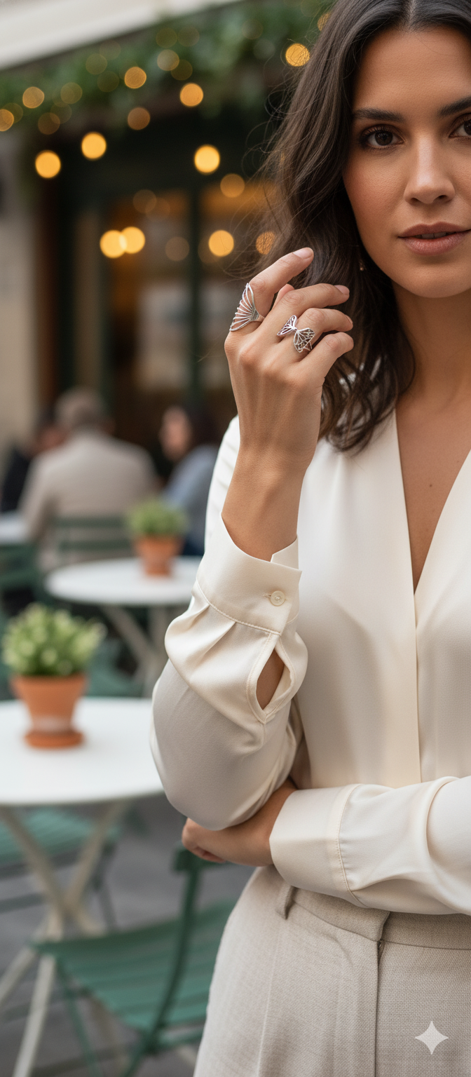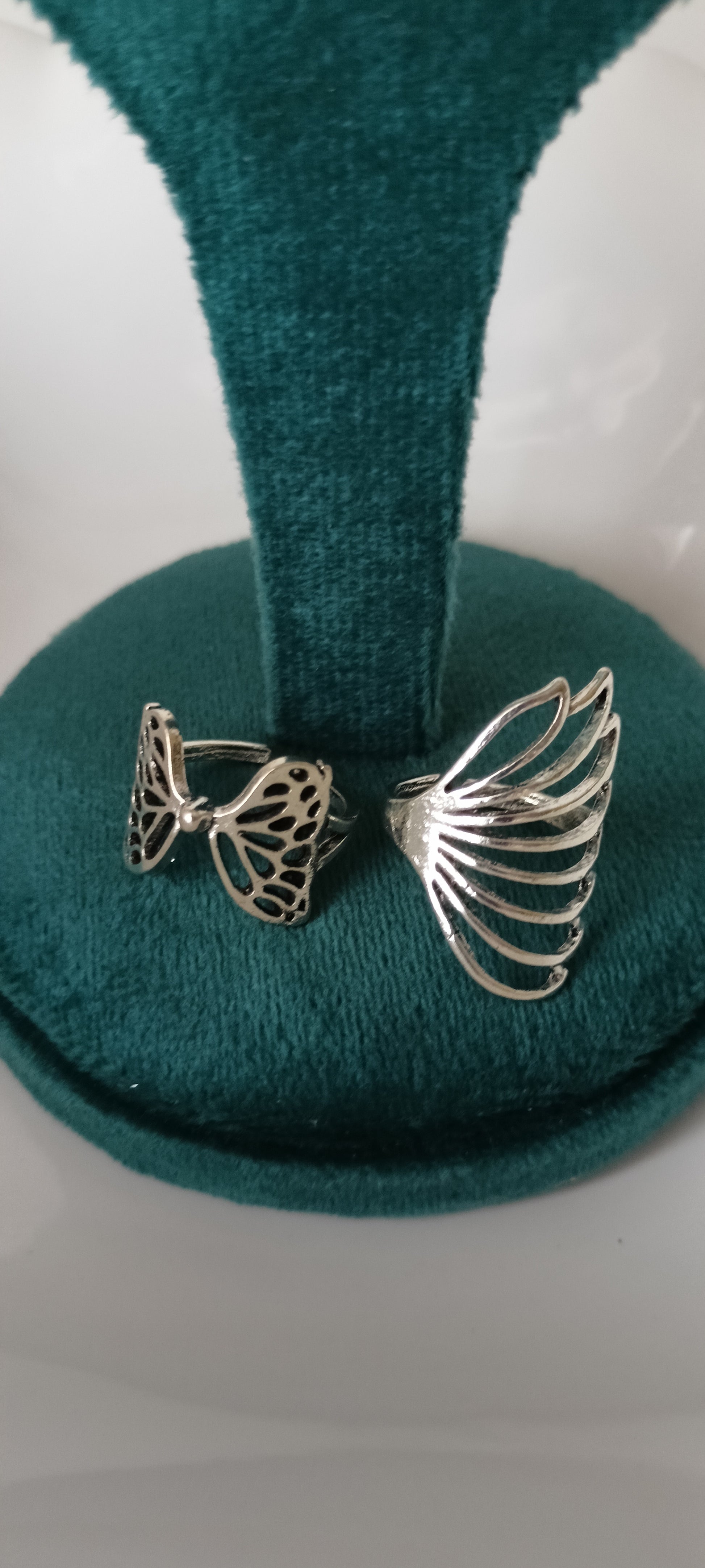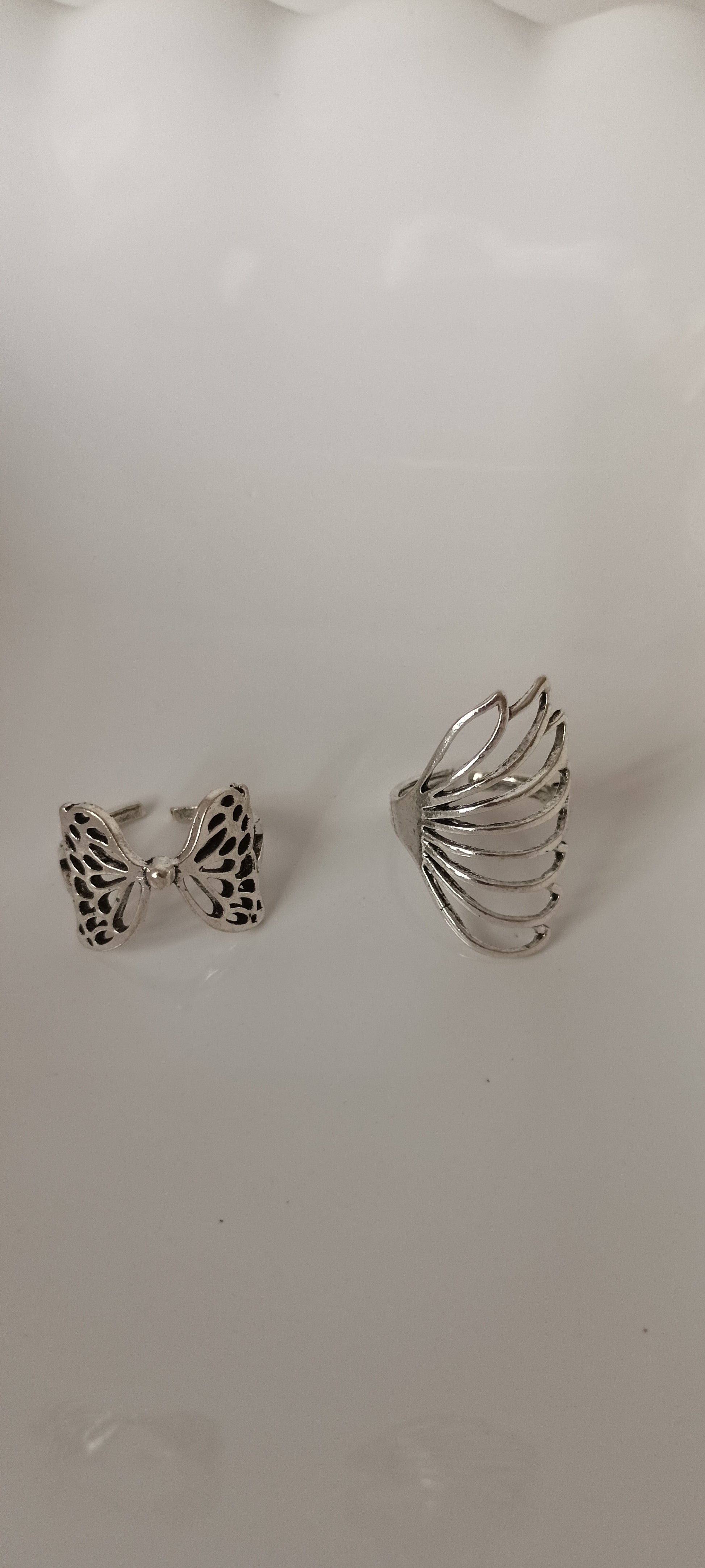 Wings of Grace Ring Set – Butterfly & Angel Wing Adjustable Silver-Tone